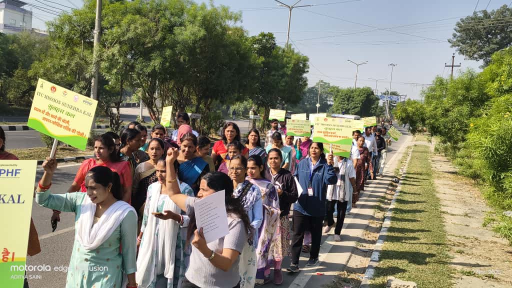 हरिद्वार। राज्य स्थापना की रजत जयंती के शुभ अवसर पर आईटीसी मिशन सुनहरा कल एवं स्वास्थ्य विभाग, हरिद्वार के संयुक्त तत्वावधान में “स्वस्थ एवं पोषित समुदाय—खुशहाल उत्तराखंड” थीम पर एक भव्य जनजागरूकता रैली का आयोजन किया गया। मुख्य चिकित्सा अधिकारी डॉ. आर.के. सिंह ने हरी झंडी दिखाकर रैली को रवाना किया। रैली जैसे ही सीएमओ कार्यालय से निकली, “स्वस्थ नारी–सशक्त परिवार”, “सही पोषण, देश रोशन” और “कुपोषण मिटाओ, सुपोषण अपनाओ” जैसे नारों से रोशनाबाद गुंजायमान हो उठा।