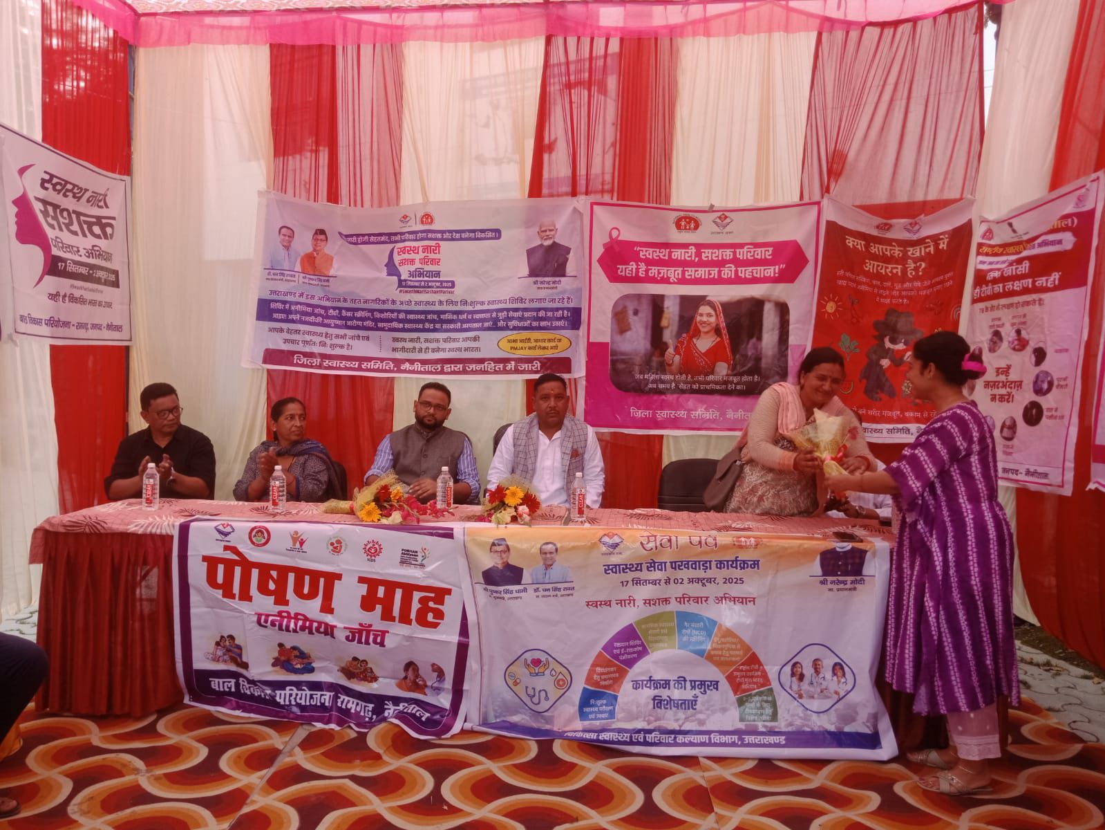 नैनीताल : सामुदायिक स्वास्थ्य केन्द्र रामगढ़ में मंगलवार को ‘स्वस्थ नारी सशक्त अभियान’ के अंतर्गत निर्धारित स्वास्थ्य शिविर का आयोजन किया गया। शिविर का शुभारम्भ विकासखण्ड रामगढ़ के प्रमुख दीपक कुमार द्वारा किया गया। इस अवसर पर ज्येष्ठ प्रमुख रंजीत सिंह, ग्राम प्रधान उमागढ़ लता जोशी, ग्राम प्रधान गढ़गांव प्रदीप बिष्ट, सामाजिक कार्यकर्ता नवाब हुसैन, खण्ड विकास अधिकारी शुभम अग्रवाल, सीडीपीओ पार्वती कोरगा, ग्राम पंचायत विकास अधिकारी रितेश भट्ट, अपर मुख्य चिकित्सा अधिकारी कुमोद पंत, चिकित्सा अधीक्षक डॉ. राहुल लसपाल तथा चिकित्सा अधिकारी गौरव कुमार उपस्थित रहे।