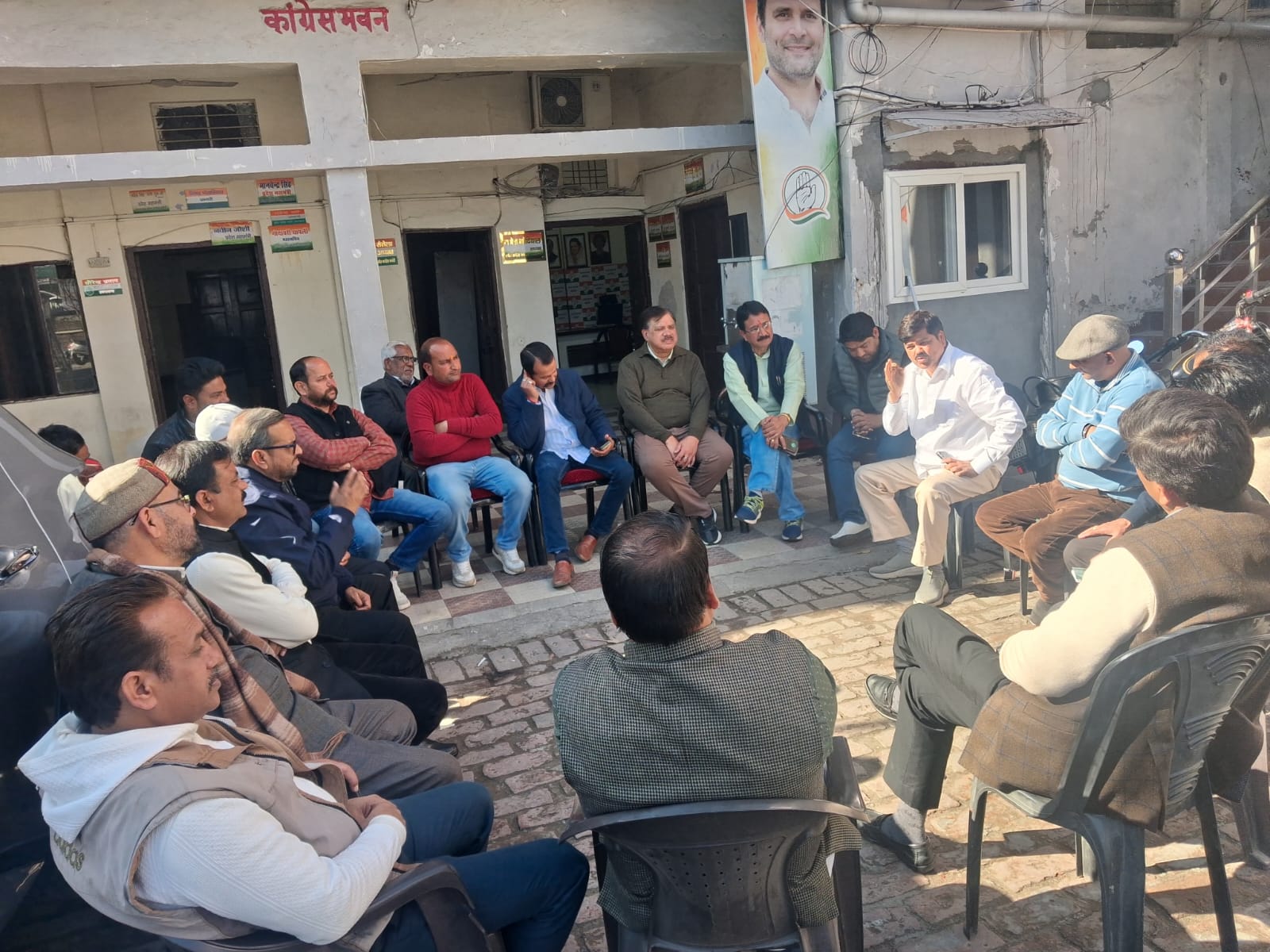 देहरादून। अखिल भारतीय कांग्रेस के आह््रवान पर 16 फरवरी को प्रदेश कांग्रेस कमेटी द्वारा आयोजित विशाल ’’राजभवन घेराव’’ कार्यक्रम की तैयारी हेतु उत्तराखण्ड प्रदेश कांग्रेस कमेटी के अध्यक्ष गणेश गोदियाल की अध्यक्षता में वरिष्ठ कांग्रेसजनों की बैठक प्रदेश कांग्रेस कमेटी कार्यालय, राजीव भवन, 21 राजपुर रोड़, देहरादून में आयोजित की गई। बैठक में उपस्थित सभी वरिष्ठ कांग्रेस नेताओं ने राजभवन घेराव की अपार सफलता हेतु अपने-अपने सुझाव दिये।