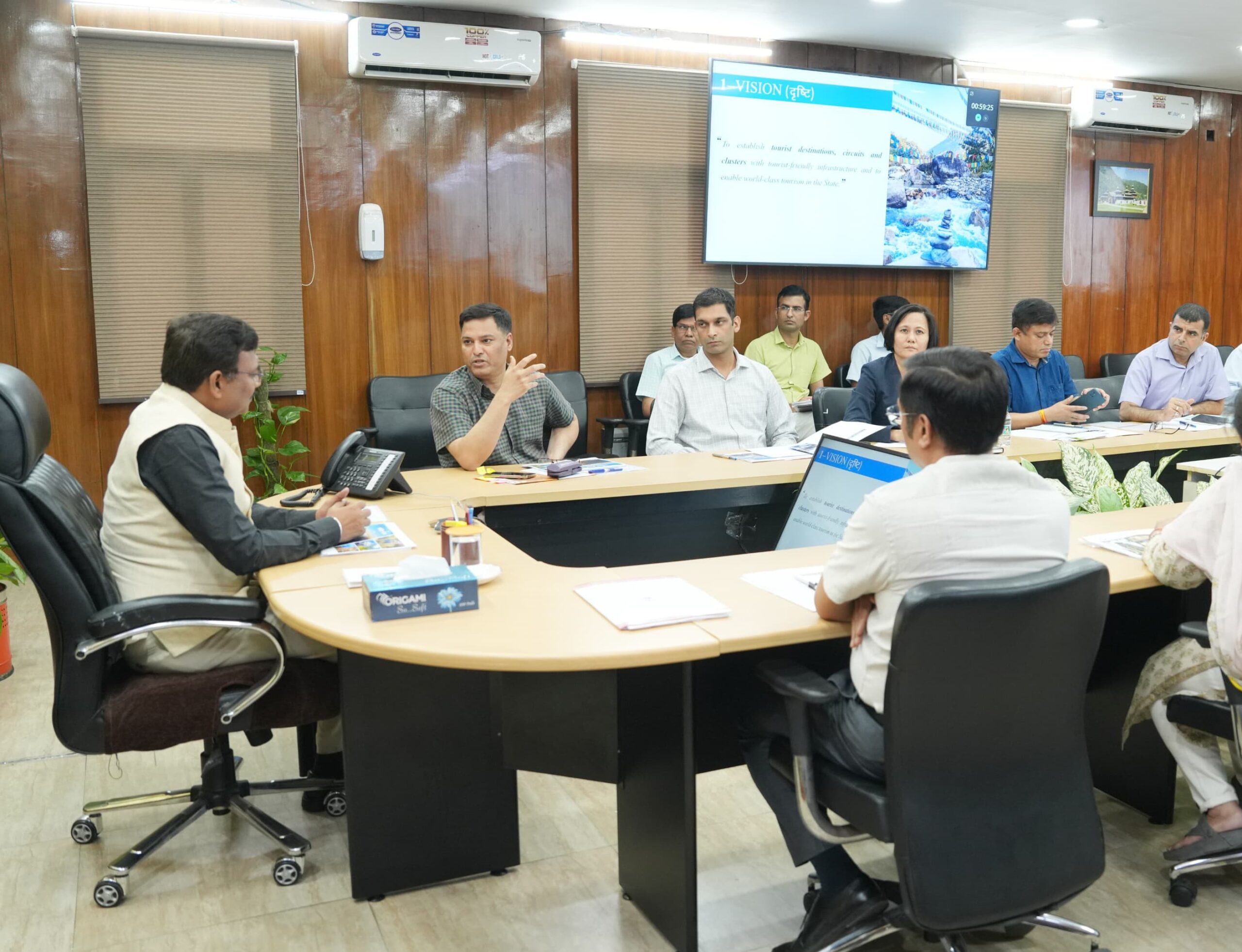 देहरादून। मुख्य सचिव आनन्द बर्द्धन ने बुधवार को सचिवालय में पर्यटन एवं संस्कृति विभाग समीक्षा की। बैठक के दौरान मुख्य सचिव ने पर्यटन एवं संस्कृति विभाग द्वारा प्रदेश में संचालित विभिन्न योजनाओं की विस्तृत जानकारी ली, एवं चल रहे कार्याे एवं आगामी योजनाओं की प्रगति की जानकारी ली। मुख्य सचिव ने कहा कि पर्यटन प्रदेश की बैकबोन है। उन्होने निर्देश दिये कि चारधाम यात्रा और धार्मिक पर्यटन के साथ ही अन्य पर्यटन स्थलों को भी विकसित किया जाए।