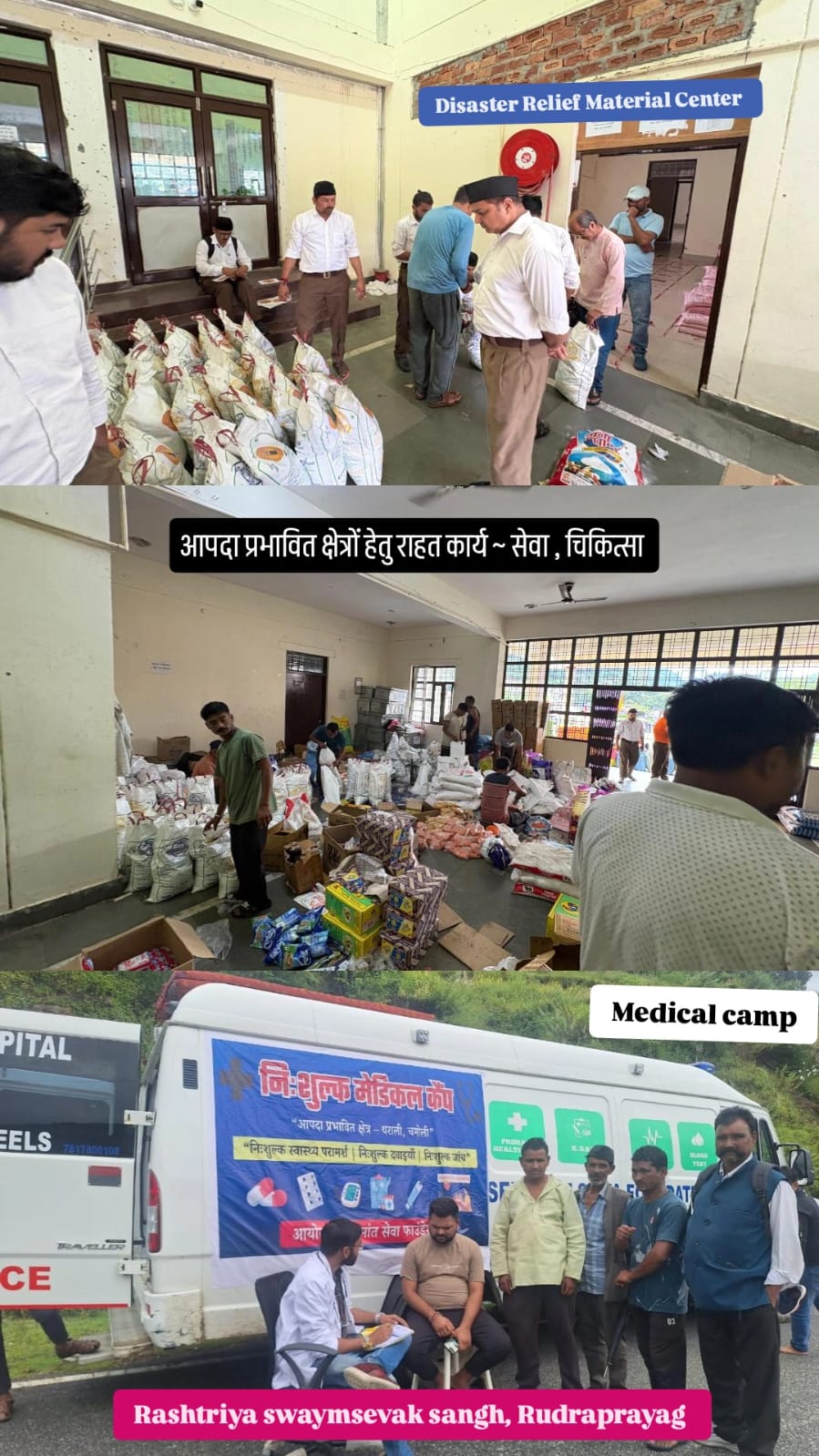 उल्लेखनीय है कि रुद्रप्रयाग जिले के अनेक गांवों में आपदा के कारण जन जीवन अस्त व्यस्त है। पिछले तीन दिनों से संघ के अपने स्वयंसेवक के सेवाभाव सेआपदाग्रस्त क्षेत्रों में प्रबंधन में जुटे हुए हैं।प्रतिदिन औसतन 4 स्थानों पर केंद्र बनाकर स्वयंसेवकों की टोलिया गांव गांव में सेवा कार्य कर रही है। श्री सेमवाल ने बताया कि बहुत से स्थान ऐसे है जहां राहत सामग्री के वाहन नहीं पहुंच पा रहे है उन ऊंचे स्थानों पर भी अपने स्वयंसेवक पैदल कई किमी चल कर राहत सामग्री पहुंचा रहे है।