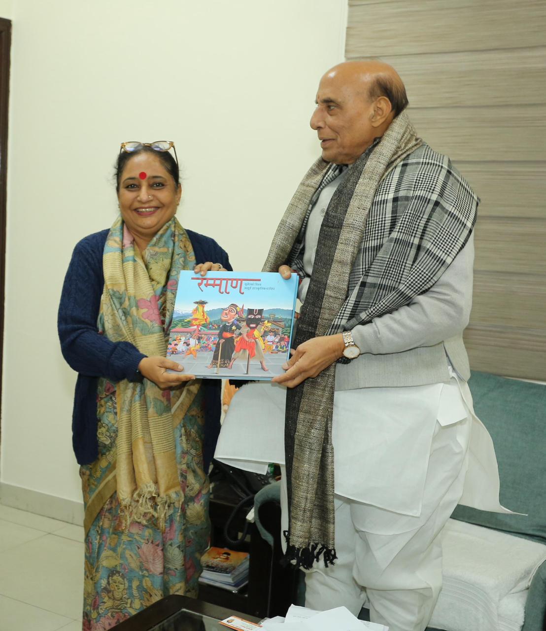 देहरादून। उत्तराखंड विधानसभा अध्यक्ष ऋतु खण्डूडी भूषण ने नई दिल्ली स्थित शासकीय आवास पर देश के केंद्रीय रक्षा मंत्री राजनाथ सिंह से शिष्टाचार भेंट की। भेंट के दौरान विधानसभा अध्यक्ष ऋतु खण्डूडी भूषण ने उत्तराखंड के विश्वविख्यात लोकनाट्य रम्माण पर आधारित पुस्तक रक्षा मंत्री को भेंट की तथा इसके सांस्कृतिक महत्व, परंपरा और विस्तार पर विस्तार से चर्चा की।