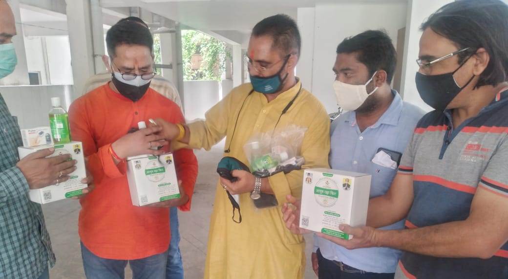 देहरादून। सेवा ही संगठन अभियान के तहत वरिष्ठ भाजपा नेता दिनेश रावत द्वारा कैंट विधानसभा क्षेत्र के वार्ड 43 द्रोणपुरी में भोले जी महाराज एवं माता मंगला हंस फाउंडेशन के सहयोग से क्षेत्रवासियों को ऑक्सीमीटर, थर्मामीटर, आयुष किट, मास्क व सैनिटाइजर वितरित किये गए। दिनेश रावत ने क्षेत्रवासियों से अपील की कि कोरोना का प्रकोप कम होते ही लापरवाह न हों और भीड़ भाड़ वाले स्थानों में जाने से बचें। जल्द से जल्द सभी अपना टीकाकरण करा के खुद को व अपने परिवार को सुरक्षित करें। वरिष्ठ भाजपा नेता दिनेश रावत ने हंस फाउंडेशन के संस्थापक भोले जी महाराज और माता मंगला का धन्यवाद और आभार प्रकट किया। इस अवसर पर संगम विहार सोसाइटी अध्यक्ष सुनील बिष्ट, विजय चैहान, सोनू बाबू राम, बीडी उनियाल, एमके नाथ, अनूप गोयल, केसी पांडेय, राजीव सागर, राम प्रसाद उपाध्याय, हिम्मत सिंह भंडारी व क्षेत्रवासी उपस्थित रहे।