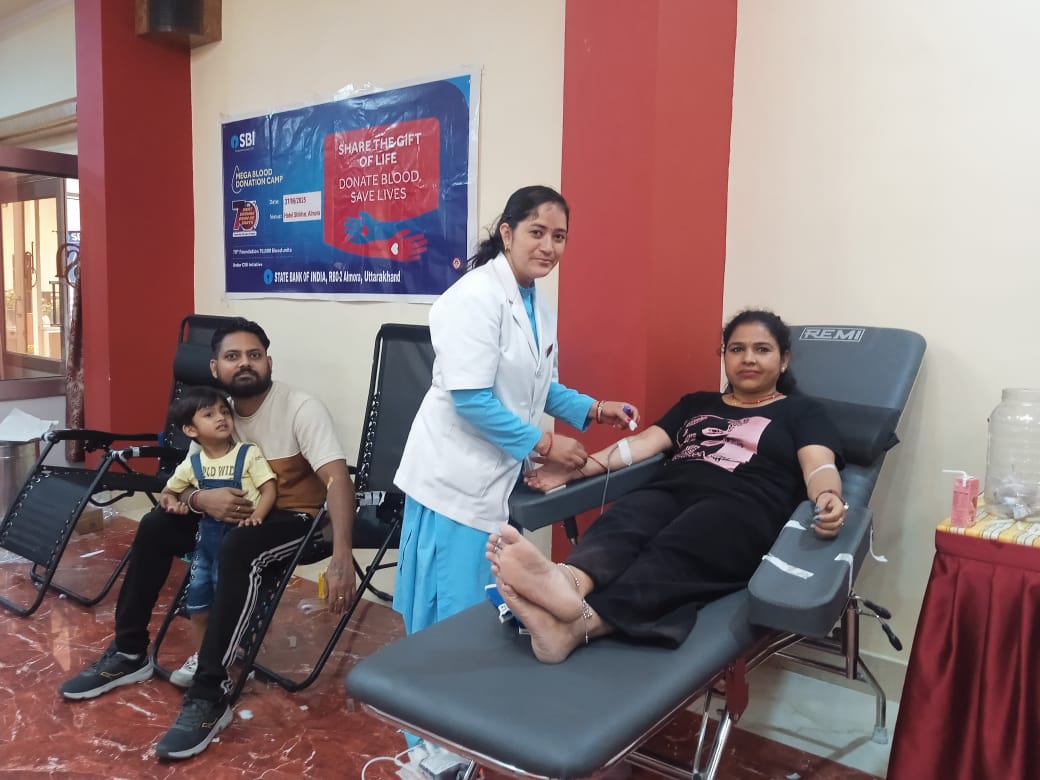अल्मोड़ा। भारतीय स्टेट बैंक के सत्तर साल पूरे होने के उपलक्ष्य मे क्षेत्रीय कार्यालय अल्मोड़ा के सौजन्य और राजकीय मेडिकल कालेज अल्मोड़ा के तकनीकी सहयोग से विशाल स्वेच्छिक रक्तदान शिविर का आयोजन किया गया। क्षेत्रीय प्रबंधक कमल छाबड़ा ने बताया एस बी आई के सत्तर साल पूरे होने के उपलक्ष्य में अल्मोड़ा जनपद मे विशाल रक्तदान शिविरों का आयोजन किया जा रहा है. इस क्रम मे आज अल्मोड़ा मेडिकल कालेज की टीम के तकनीकी सहयोग से 102 यूनिट रक्तदान किया गया।