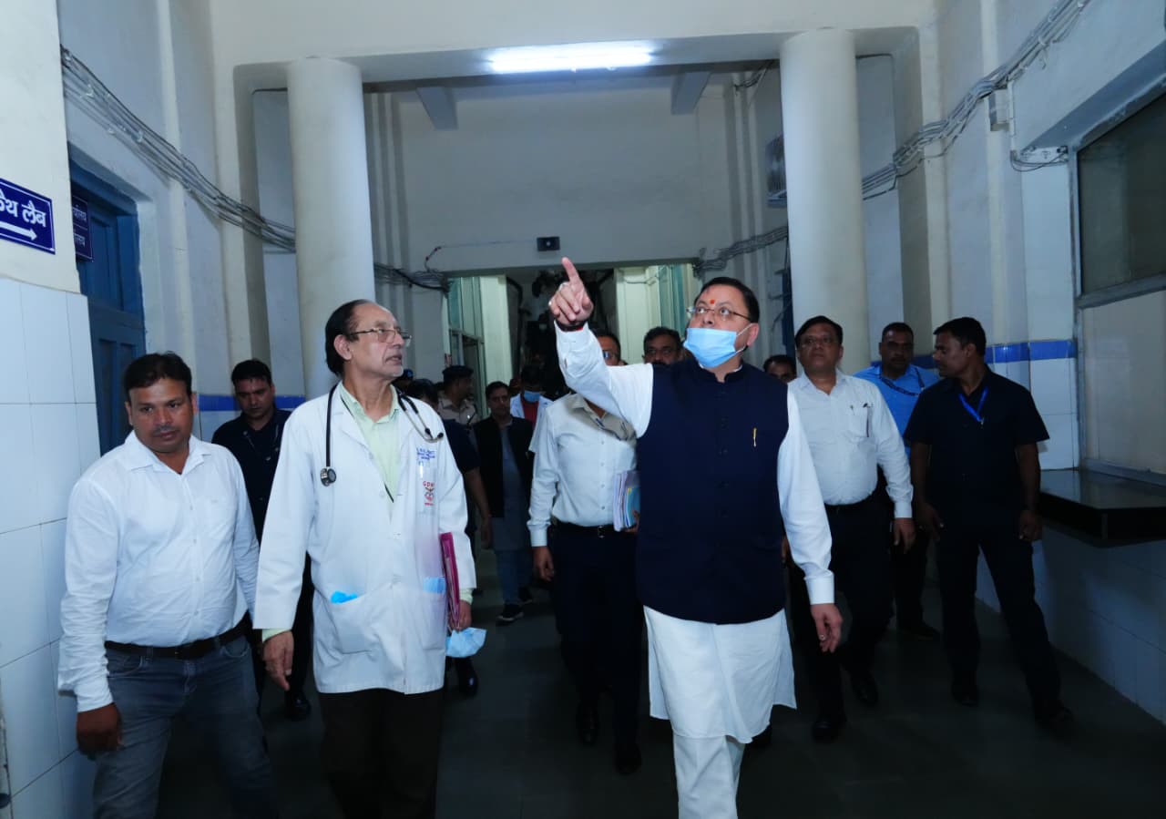 देहरादून। मुख्यमंत्री पुष्कर सिंह धामी ने शनिवार संध्या को राजकीय दून मेडिकल कॉलेज चिकित्सालय का औचक निरीक्षण कर अस्पताल में उपलब्ध स्वास्थ्य सेवाओं, उपचार की गुणवत्ता तथा व्यवस्थाओं का गहन जायजा लिया। निरीक्षण के दौरान मुख्यमंत्री ने अस्पताल में उपचाररत विभिन्न मरीजों से भेंट कर उनके स्वास्थ्य की जानकारी ली तथा उन्हें अस्पताल द्वारा प्रदान की जा रही चिकित्सीय सुविधाओं के बारे में पूछा। मरीजों और उनके परिजनों से संवाद के माध्यम से मुख्यमंत्री ने चिकित्सा सेवाओं की गुणवत्ता को प्रत्यक्ष रूप से समझा तथा आवश्यक निर्देश भी दिए।