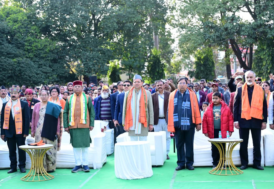 देहरादून। मुख्यमंत्री पुष्कर सिंह धामी ने गणतंत्र दिवस के अवसर पर देहरादून स्थित गांधी पार्क में भारत विकास परिषद द्वारा आयोजित सामूहिक वंदे मातरम् गायन कार्यक्रम में प्रतिभाग किया। इस अवसर पर अपने संबोधन में मुख्यमंत्री ने उपस्थित जनसमूह को गणतंत्र दिवस की हार्दिक शुभकामनाएं दीं। उन्होंने कहा कि गणतंत्र दिवस के पावन अवसर पर इस गरिमामयी सामूहिक वंदे मातरम् गायन कार्यक्रम में सहभागिता करना उनके लिए अत्यंत गौरव और हर्ष का विषय है। मुख्यमंत्री ने कहा कि यह अवसर इसलिए भी विशेष है क्योंकि राष्ट्रगीत वंदे मातरम् अपनी रचना के 150 गौरवशाली वर्ष पूर्ण कर चुका है।