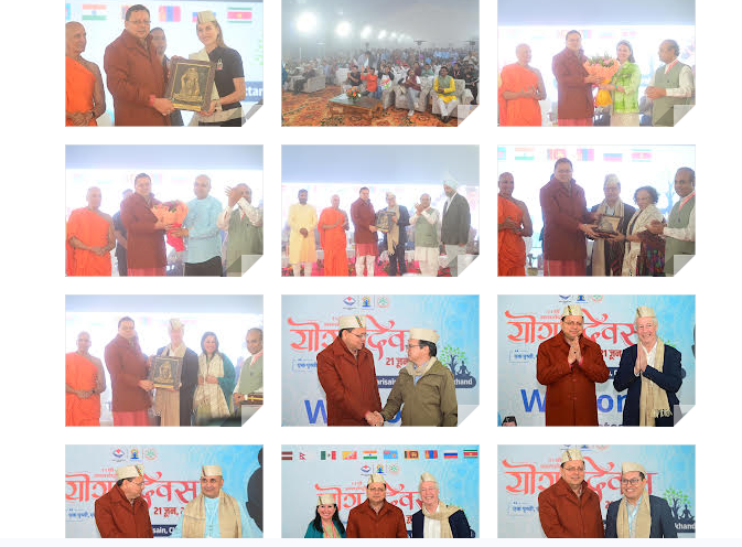 सांस्कृतिक कार्यक्रमों में दिखी पूरे उत्तराखंड की झलकः अंतर्राष्ट्रीय योग दिवस की पूर्व संध्या पर आयोजित कार्यक्रम में संपूर्ण उत्तराखंड की झलक देखने को मिली। कार्यक्रम की शुरुआत नंदा देवी राज जात से हुई, इसके बाद उत्तराखंड की विभिन्न लोकनृत्य प्रस्तुतियों ने सभी का मन मोह लिया। इनमें झोड़ा-छपेली लोकनृत्य, नाटी व अन्य लोकप्रिय नृत्य रहे, जिन्होंने गढ़वाली, कुमाऊनी, व जौनसारी संस्कृतियों से सभी को रूबरू कराया। इस अवसर पर भारत में मैक्सिको के राजदूत फेडेरिको सालास, मेक्सिको दूतावास में आर्थिक मामलों के प्रमुख रिकार्डाे डेनियल डेलगाडो, भारत में फिजी उच्चायोग के हाई कमिश्नर जगन्नाथ सामी, भारत में नेपाल के राजदूत डॉ शंकर प्रसाद शर्मा, भारत में सूरिनाम के राजदूत अरुणकोमर हार्डियन, भारत में मंगोलिया के राजदूत डंबाजाविन गैंबोल्ड, भारत में लातविया दूतावास में डिप्टी हेड ऑफ मिशन मार्क्स डीतॉन्स, भारत के श्रीलंका उच्चायोग के मिनिस्टर काउंसलर लक्ष्मेंद्र गेशन डिसनायके, रूसी दूतावास में प्रथम सचिव क्रिस्टिना अनानीना एवं तृतीय सचिव कैटरीना लज़ारेवा, योग गुरु पद्मश्री स्वामी भारत भूषण, विधायक अनिल नौटियाल, सचिव दीपेन्द्र कुमार चौधरी, गढ़वाल कमिश्नर विनय शंकर पांडे, राज्य आपदा प्रबंधन प्राधिकरण के उपाध्यक्ष डॉ. विनय रुहेला, सूचना महानिदेशक बंसीधर तिवारी, जिलाधिकारी चमोली संदीप तिवारी, पुलिस अधीक्षक सर्वेश पंवार एवं अन्य लोग मौजूद रहे।