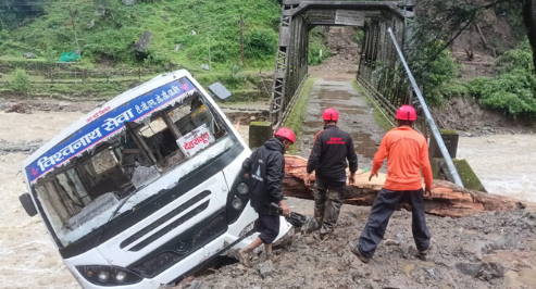 चमोली जनपद के दशौली विकासखंड के कोंज पोथनी गांव के समीप बरसाती गदेरे के उफान पर आने से पैदल पुल बह गया है। जिससे ग्रामीणों को आवाजाही के दिक्कतों का सामना करना पड़ रहा है। ग्रामीण उफनते गदेरे से ही आवाजाही कर रहे हैं। गांव के ऊपर पहाड़ी से एक बोल्डर छिटककर गांव के ऊपर गोशाला तक आ गया है, जिससे गांव को खतरा उत्पन्न हो गया है।