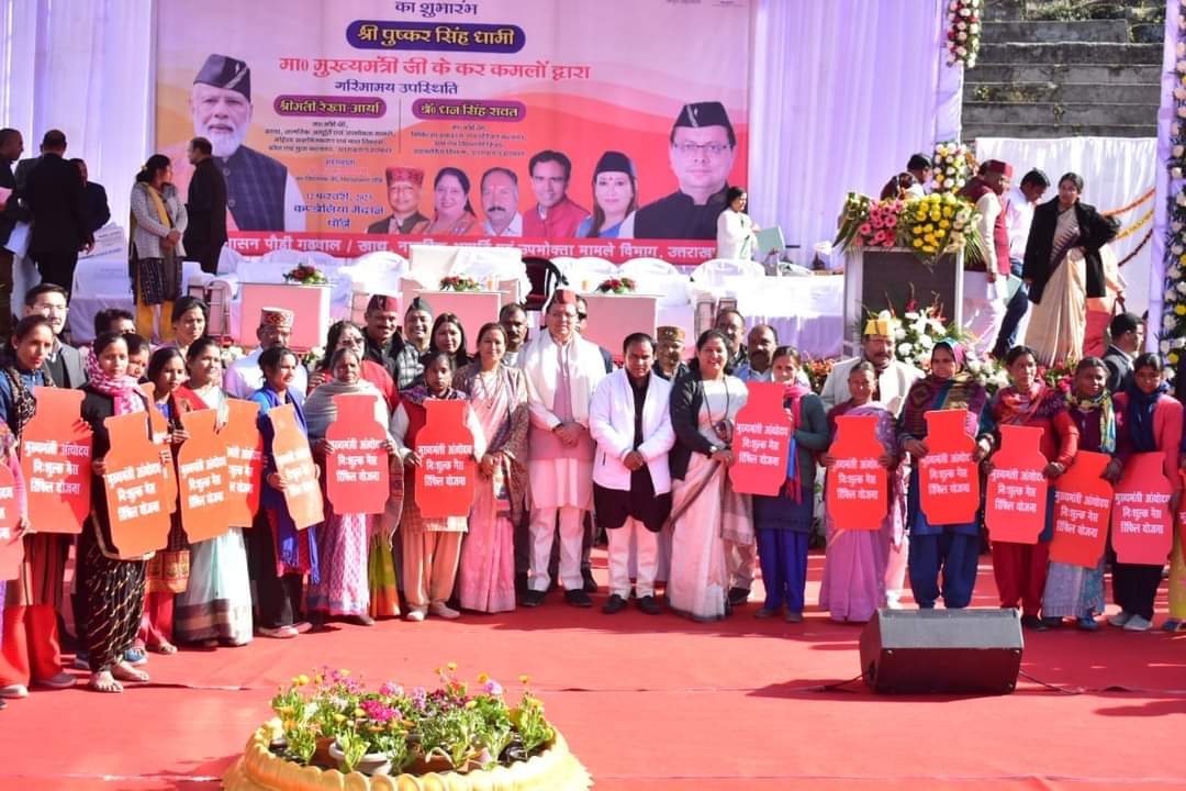 पौड़ी/देहरादून: मुख्यमंत्री पुष्कर सिंह धामी द्वारा रविवार को पौड़ी गढ़वाल के कण्डोलिया मैदान से मुख्यमंत्री अन्त्योदय निःशुल्क गैस रिफिल योजना का शुंभारभ किया गया। कैबिनेट मंत्री रेखा आर्य और डॉ० धन सिंह रावत की उपस्थिति में 23 महिलाओं को गैस रिफिल का लाभ देकर योजना की शुरूआत की गयी। इस योजना के तहत अन्त्योदय परिवारों को 01 वर्ष में 03 निःशुल्क गैस रिफिल का लाभ दिया जायेगा तथा पूरे प्रदेश में लगभग 1 लाख 76 हजार अन्त्योदय कार्ड धारकों को इसका लाभ मिलेगा। इस योजना के शुभांरभ के अवसर पर प्रदेश भर से मंत्रीगण और विधायकगण भी ऑनलाइन जुड़े हुए थे।