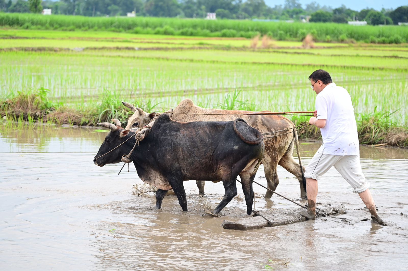 खटीमा: खटीमा के नगरा तराई क्षेत्र में उत्तराखंड के मुख्यमंत्री पुष्कर सिंह धामी ने शनिवार को अपने खेत में धान की रोपाई कर किसानों के परिश्रम, त्याग और समर्पण को नमन किया। उन्होंने कहा कि खेतों में उतरकर पुराने दिनों की यादें ताजा हो गईं। मुख्यमंत्री ने कहा कि अन्नदाता न केवल हमारी अर्थव्यवस्था की रीढ़ हैं, बल्कि वे हमारी संस्कृति और परंपराओं के संवाहक भी हैं।