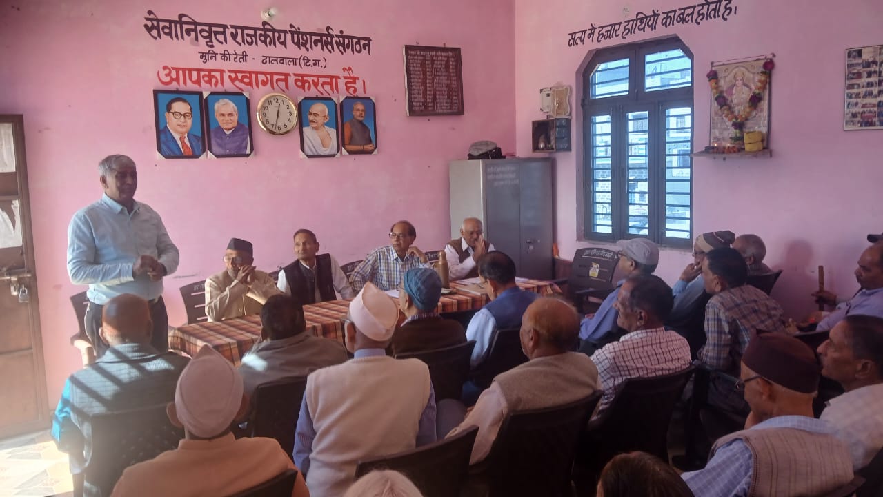 देहरादून। सेवानिवृत्त राजकीय पेंशनर्स संगठन मुनिकीरेती-ढालवाला की मासिक बैठक पेंशनर्स भवन ढालवाला में संगठन के अध्यक्ष शूरवीर सिंह चौहान व सचिव भगवती प्रसाद उनियाल के संचालन में हुई। बैठक में सभी सदस्यों के द्वारा खारास्रोत में चल रहे शराब के ठेके के विरोध में सहयोग करने की अपील की गई। खारास्रोत में चल रहे ठेके से पूरी तीर्थ नगरी हेतु बुरा सन्देश जा रहा है। उन्होने मांग की कि खारास्रोत से शराब के ठेके को तुरंत अन्यत्र शिफ्ट किया जाय या पूरी तरह से बन्द किया जाय। संगठन के कोषाध्यक्ष जबर सिंह पंवार ने चन्द्रभागा नदी पर खनन कार्य प्रारंभ करने व ढालवाला तथा 14 बीघा पुल की उंचाई बढाने की सरकार से मांग की। .