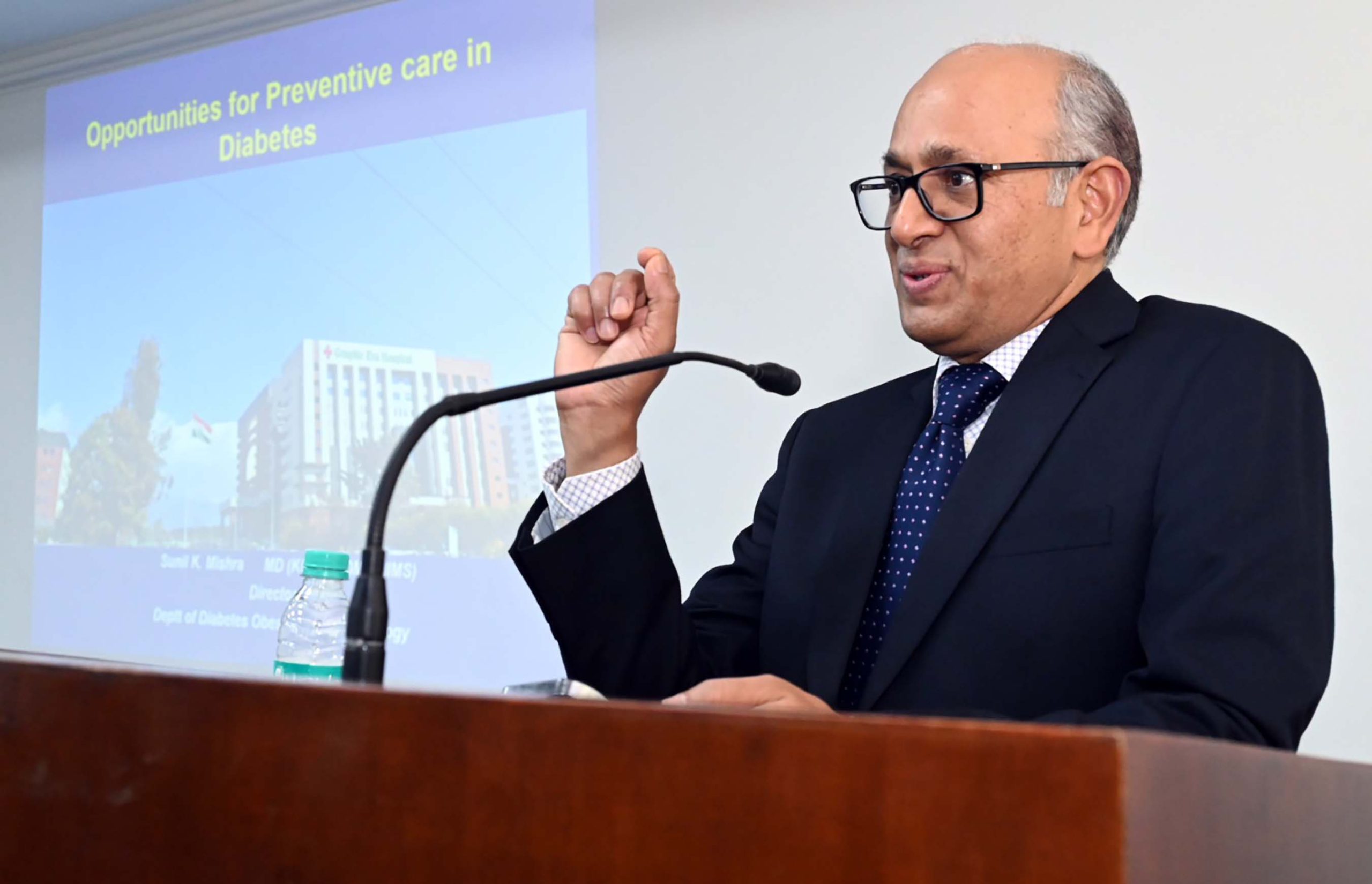 देहरादून। ग्राफिक एरा में विशेषज्ञों ने डायबिटीज के कारणों, शुरुआती लक्षणों और दीर्घकालिक प्रभावों की जानकारी साझा की। उन्होंने समय पर जांच, संतुलित पोषण और जीवन शैली में सुधार को इसके रोकथाम के मुख्य उपाय बताया। आज ग्राफिक एरा डीम्ड यूनिवर्सिटी में वर्ल्ड डायबिटीज वीक के तहत हेल्थ कैंप का आयोजन किया गया। ग्राफिक एरा मेडिकल कॉलेज के डायबिटीज डिपार्टमेंट के डायरेक्टर और डायबिटोलॉजिस्ट डॉ. सुनील कुमार मिश्रा ने कहा कि स्वास्थ्य पर किया गया निवेश जीवन का सबसे लाभकारी निवेश हैं। उन्होंने असंतुलित आहार, निष्क्रिय दिनचर्या, तनाव और अव्यवस्थित जीवन शैली आदि को डायबिटीज के प्रमुख कारण बताते हुए जोर दिया की इन्हीं आदतों में छोटे-छोटे सुधार ही हमारे सबसे बड़ी सुरक्षा बन सकते हैं। डॉ. मिश्रा ने कहा कि समय रहते जागरूकता और नियमित जांच न केवल रोग को नियंत्रित रखते हैं बल्कि इसकी शुरुआत को भी रोक सकते हैं।