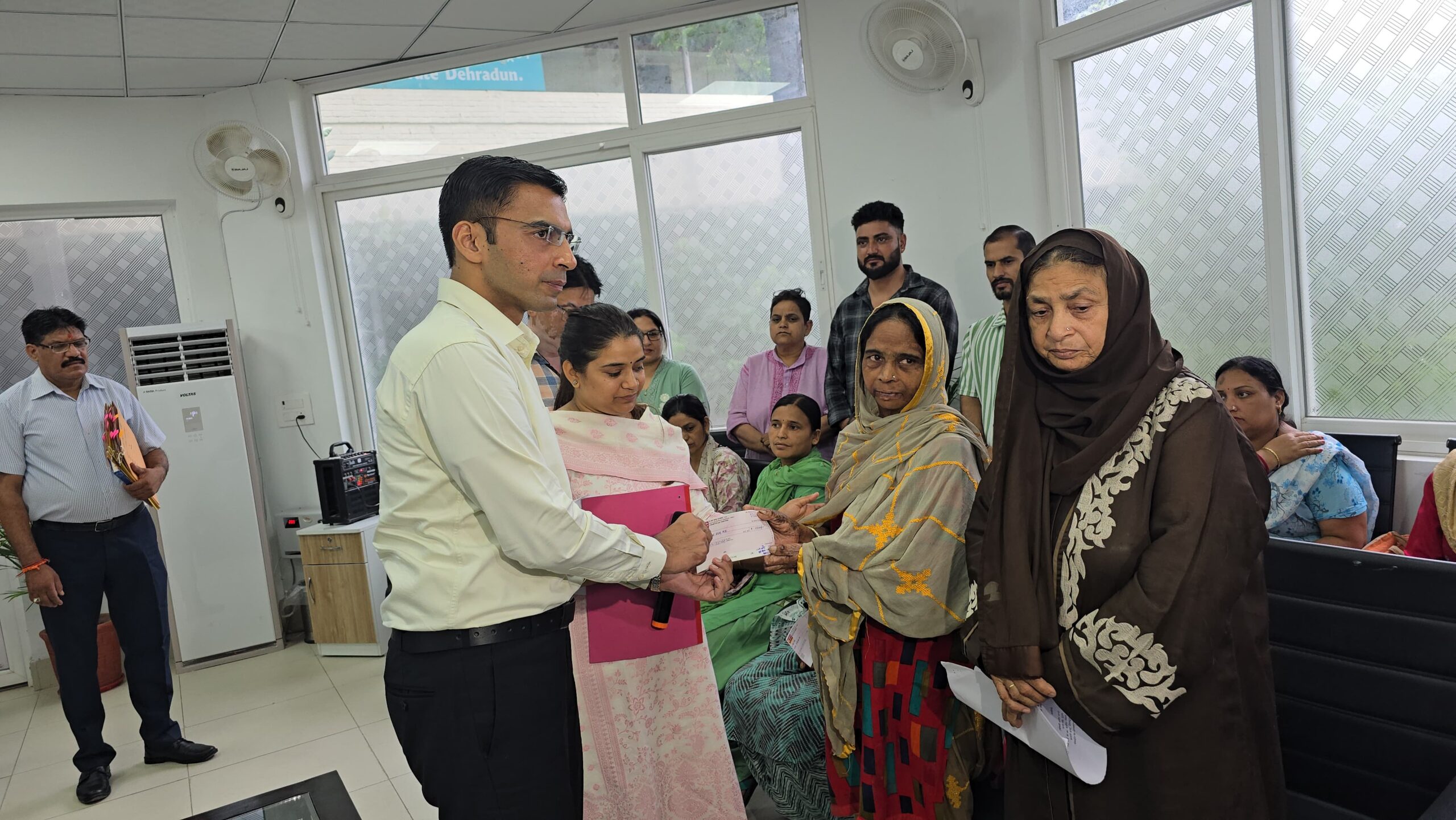 देहरादून। मुख्यमंत्री की प्रेरणा से जिलाधिकारी सविन बंसल जनपद में असहाय, अक्षम और निर्धन लोगों को समाज की मुख्यधारा से जोड़ने के लिए निरंतर कार्य कर रहे हैं। गरीब और जरूरतमंदों को सरकार की योजनाओं के साथ ही जिले स्तर पर उपलब्ध संशाधनों से आर्थिक सहायता प्रदान कर उनकी विशेष जरूरतों को पूरा करने में जुटे है। राज्य में प्रथमबार, रायफल क्लब फंड का सदुपयोगय जरूरतमंद असहाय, लाचार विधवा के जीवन उत्थान पर किया जा रहा है देहरादून यह शुरूआत करने वाला पहला जिला बना है। आज कलेक्टेªट में असहाय विधवा पुनम ठाकुर, बिरोजनी उनियाल, आशादेवी, खष्टी बिष्ट, बबीता एवं रेशमी जिनके पति का एक्सीडेंट में गंभीर घायल हैं, का सहारा बना डीएम का रायफल फंड, 25-25 हजार आर्थिक सहायता चैक वितरित किए गए है।