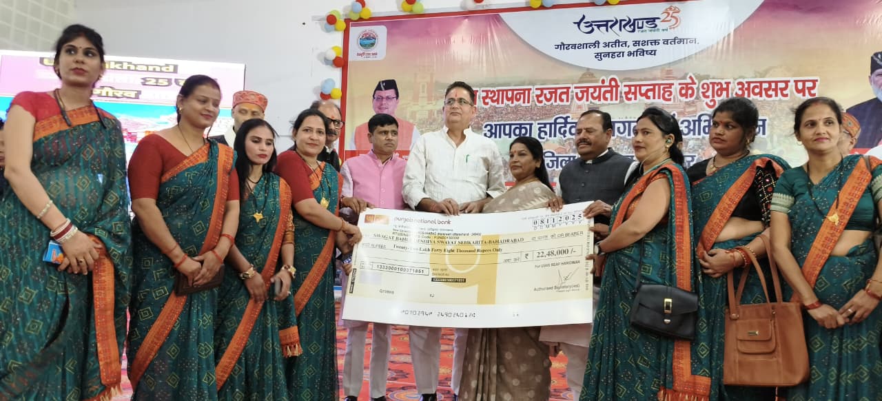 हरिद्वार। उत्तराखंड राज्य स्थापना की रजत जयंती सप्ताह के अवसर पर जिला प्रशासन हरिद्वार के तत्वावधान में एक गरिमामय कार्यक्रम का आयोजन किया गया। कार्यक्रम का आयोजन ग्रामोतथान रीप परियोजना, उत्तराखंड ग्राम विकास समिति एवं ग्राम्य विकास विभाग के संयुक्त प्रयासों से किया गया। इस अवसर पर 7 सीएलएफ (क्लस्टर लेवल फेडरेशन) से जुड़ी स्वयं सहायता समूहों (SHG) की अल्ट्रा पुअर महिलाओं को स्वरोजगार एवं उद्यमिता स्थापना हेतु आर्थिक सहयोग प्रदान किया गया।
