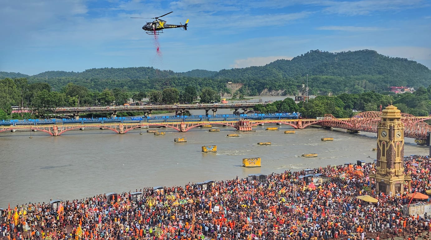 देहरादून। मुख्यमंत्री पुष्कर सिंह धामी ने ओम पुल में आयोजित कार्यक्रम में कांवड़ियों के पांव धोकर (प्रक्षालन) कावड़ियों/शिव भक्तों का किया स्वागत किया। हरिद्वार आये कांवडियों एवं शिव भक्तों पर हेलीकॉप्टर से पुष्प वर्षा। देवभूमि उत्तराखण्ड के तीर्थ नगरी हरिद्वार में गंगा सभा एवं भारतीय नदी परिषद के तत्वाधान में गंगा तट पर विश्व के सबसे ऊँचे 251 फीट भगवा ध्वज की मुख्यमंत्री पुष्कर सिंह धामी ने की घोषणा।