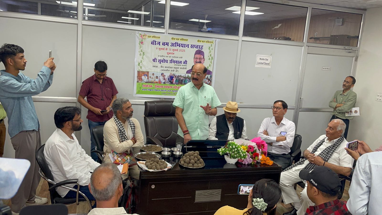 रु कार्यक्रम में प्रमुख वन संरक्षक समीर सिंहा ने कहा कि वन विभाग इस अभियान को गंभीरता से अपनायेगा। इसकी तैयारी कर ली गई है, राज्य में बीट स्तर पर बीज बम बनाए जा रहे है। इसके लिए विभाग को आदेश जारी कर दिया गया है। इस वर्ष से विभाग बड़े स्तर पर बीज बम अभियान चलाएगा। बीज बम अभियान के प्रणेता द्वारिका प्रसाद सेमवाल ने कहा कि वर्ष 2017 से शुरू हुई यात्रा धीरे धीरे आगे बढ़ रही है, यह बिना बजट का कार्यक्रम है, अभियान से प्रेरित होकर लोग बीज बम बनाने के साथ बीजों को भी बचा रहे है। उन्होंने माननीय मंत्री सुबोध उनियाल को बीज बम को वन विभाग की कार्ययोजना में शामिल करने के लिए धन्यवाद दिया। आज उत्तराखंड के साथ ही अन्य कई राज्यों में भी बीज बम अभियान सप्ताह की शुरुआत हो गई है।
