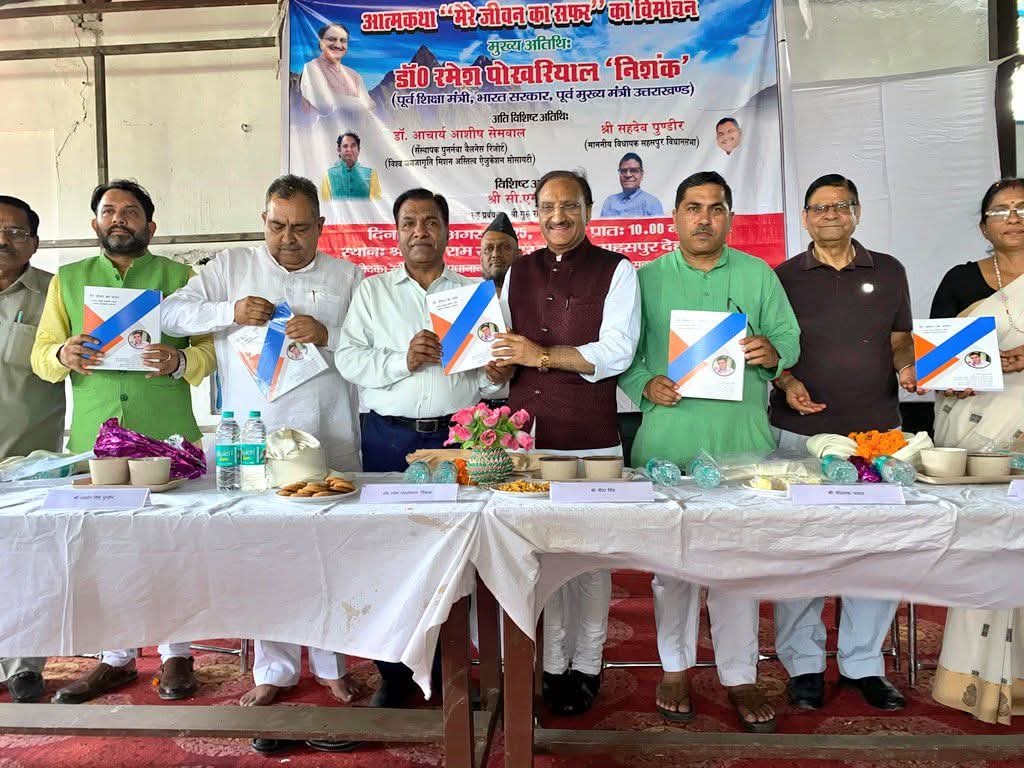 देहरादून, गढ़ संवेदना न्यूज। श्री गुरु राम राय इंटर कॉलेज सहसपुर के प्रधानाचार्य डॉ रवीन्द्र सैनी की आत्मकथा ’मेरे जीवन का सफर’ का विमोचन पूर्व केंद्रीय शिक्षा मंत्री एवं उत्तराखंड के पूर्व मुख्यमंत्री रहे डॉ. रमेश पोखरियाल निशंक के द्वारा किया गया। डॉ रमेश पोखरियाल निशंक ने इस पुस्तक विमोचन के कार्यक्रम में मुख्य अतिथि थे। इसके साथ इस कार्यक्रम में सहसपुर विधानसभा क्षेत्र के वर्तमान विधायक सहदेव पुंडीर, जिला अध्यक्ष भाजपा मीता सिंह, नगर पालिका हरबर्टपुर की अध्यक्ष नीरू देवी, पुनर्नवा वैलनेस रिजॉर्ट तथा विश्व जन जागृति मिशन अस्तित्व एजुकेशन सोसाइटी के संस्थापक डॉक्टर आचार्य आशीष सेमवाल, श्री गुरु राम राय इंटर कॉलेज के प्रबंधक चंद्र मोहन सिंह पयाल अतिथि के रूप में उपस्थित रहे।