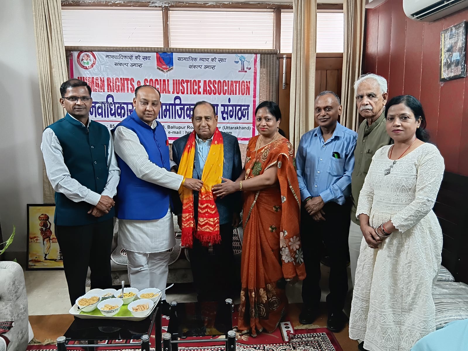 देहरादून, गढ़ संवेदना न्यूज। मानवाधिकार एवं सामाजिक न्याय संगठन द्वारा मसूरी रोड स्थित पुरुकुल हेरिटेज ग्रीन में राजेश टंडन (से०नि०) पूर्व न्यायमूर्ति उच्च न्यायालय उत्तराखण्ड को राज्यपाल कुलाधिपति (उत्तराखंड) की ओर से उत्तराखंड संस्कृत विश्वविद्यालय की कार्यपरिषद् में 02 वर्षों के लिए सदस्य के रूप में नामित किये जाने पर उनको उनके आवास पर संगठन द्वारा शुभकामनाएं प्रेषित कीं।