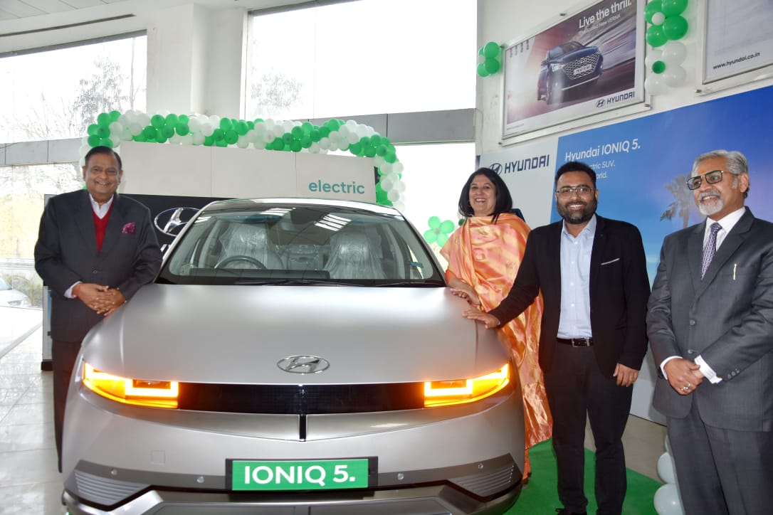 देहरादून। देहरादून में हरिद्वार बाईपास स्थित डी.पी.एम. हुण्डई शोरूम में नई हुण्डई आईओनिक 5 कार लान्च की गई। कार को कम्पनी के एम.डी. हरीश सूरी, गौरी सूरी एवं एरिया मेनेजर गौरव चैहान द्वारा लांच किया गया। इस मौके पर आयोजित प्रेस वार्ता में ए.वी.पी. मोहित छाबडा व एम.डी. हरीश सूरी ने कहा कि इस सेग्मेंट की कार में पेरामेट्रिक्स पिक्सल्स लाइट मिलती है। इसके साथ सबसे बड़ा व्हील बेस मिलता है, 72.6 किलो वाट की बैटरी बैकप की सुविधा मिलती है। जो कि 631 किलोमीटर की रेंज देती है। मेवसिम्म पावर 160 किलोवाट की पावर जनरेट करता है। इस गाडी की लम्बाई 4635 एम.एम. और चैडाई 1890 एम.एम., ऊंचाई 1625 एम.एम. है। जो कि गाड़ी को और आकर्षक बनाती है। इस गाडी में एडवांस ड्राइवर असिसटेंस सिस्टम की सुविधा भी उपलब्ध है। लांच सेरेमनी में ए.वी.पी. मोहित छाबड़ा, वी.पी. सुष्मिता विश्वास एवं एच.आर. हेड अजय गुप्ता, एडमिन हेड जयन्त मिश्रा भी उपस्थित रहे।