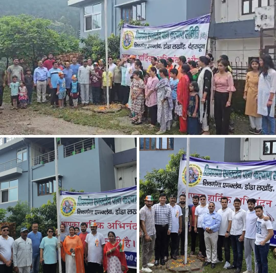 देहरादून। डांडालखौड़ स्थित “शिवगंगा एनक्लेव” के निवासियों ने अपनी सोसाइटी “शिवगंगा एनक्लेव जनकल्याण समिति” के बैनर तले शिव मंदिर परिसर में स्वतंत्रता दिवस की थीम “छमू प्दकपं“ के संकल्प को ध्यान में रखकर ध्वजारोहण कर हर्षोल्लास के साथ स्वतंत्रता दिवस को मनाया।आजादी के 79वें वर्षगांठ को समिति वासियों ने बड़े धूमधाम से मनाया। आजादी के इस महोत्सव के मौके पर “शिवगंगा एनक्लेव” की मातृ शक्ति और पुरूषों के साथ ही बच्चों ने भी बड़ी संख्या में प्रतिभाग किया।