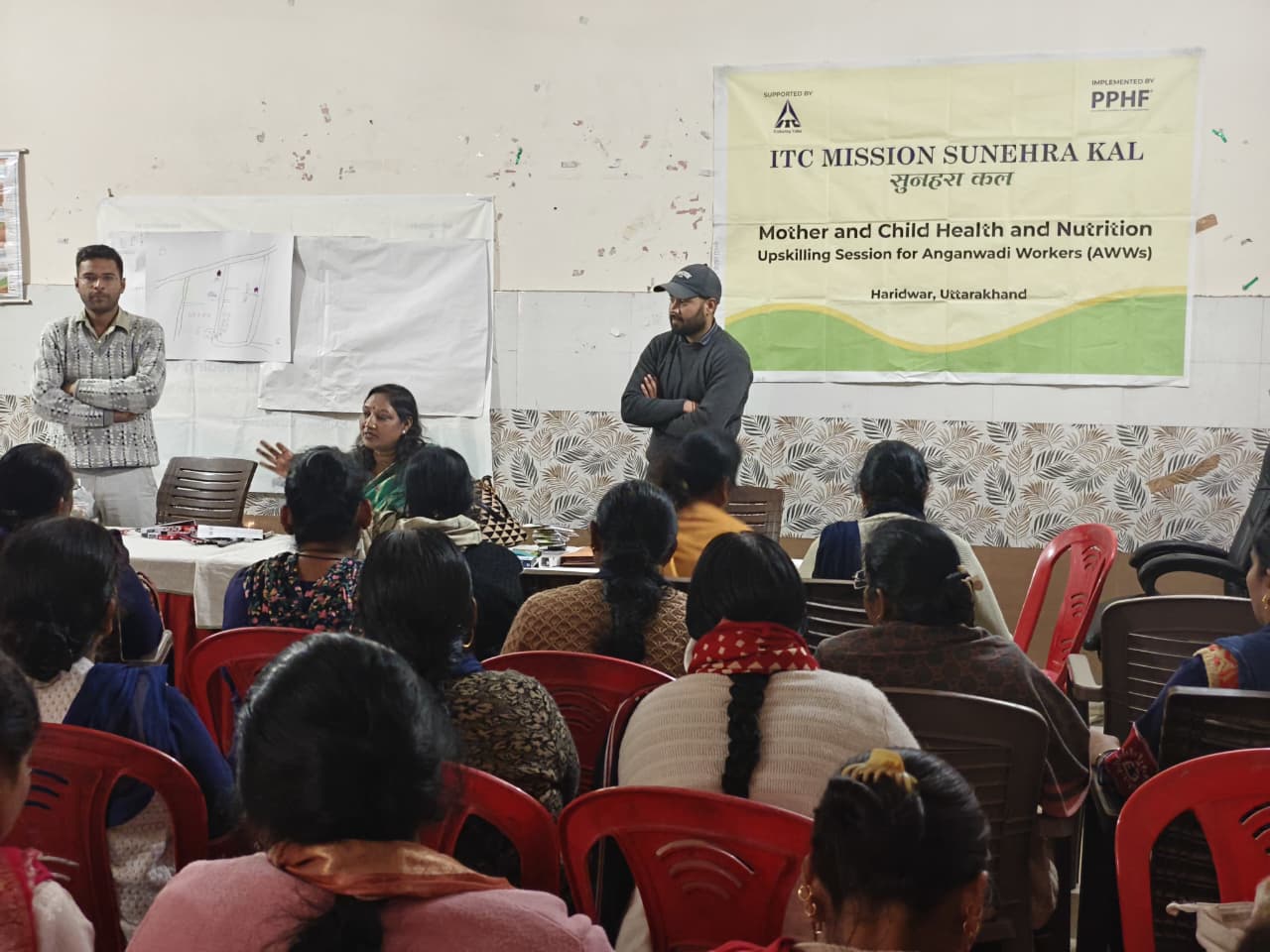 बहादराबाद: आईटीसी मिशन सुनहरा कल के अंतर्गत पीपल टू पीपल हेल्थ फाउंडेशन द्वारा बहादराबाद ब्लॉक में आंगनवाड़ी कार्यकर्ताओं के लिए आयोजित एक दिवसीय उन्नत प्रशिक्षण एवं क्षमता विकास कार्यक्रम अत्यंत सफल और प्रभावशाली रहा। कार्यक्रम का उद्देश्य बाल स्वास्थ्य, कुपोषण निवारण एवं सामुदायिक विकास को मजबूत आधार प्रदान करना था, जिसमें प्रतिभागियों को नवीनतम ज्ञान और व्यवहारिक कौशलों से सशक्त किया गया। इस प्रशिक्षण में संतुलित पोषण, ग्रोथ मॉनिटरिंग की वैज्ञानिक प्रक्रिया, सटीक BMI मूल्यांकन, सोशल मैपिंग की तकनीक, तथा कुपोषण की शीघ्र पहचान और प्रबंधन जैसे महत्वपूर्ण विषयों पर विशेषज्ञ प्रशिक्षकों द्वारा गहन और प्रेरक सत्र प्रस्तुत किए गए। प्रतिभागियों को आधुनिक उपकरणों एवं नवीन कार्यप्रणालियों को समझने और अपनाने का सुअवसर मिला।