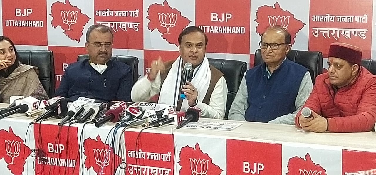 कर्नाटक में क्या हो रहा आप सभी देख रहे हैं छात्राओं को पढ़ाई से दूर कर हिजाब को लेकर बरगलाया जा रहा है द्य यदि अल्पसंख्यक तुष्टीकरण वाली कॉंग्रेस की चली तो देवभूमि में भी ऐसा ही हो सकता है। इसलिए कॉंग्रेस को एक बार नहीं बार हराना है कि कोई भी अल्पसंख्यक तुष्टीकरण की नीति पर चलने की सोचे भी नहीं द्य इनके नेता कपिल सिब्बल सुप्रीम कोर्ट में और राज्य के नेता कर्नाटक हाईकोर्ट में हिजाब की पैरवी कर रहे हैं। देश में विशेकर सीमा से सटे राज्यों में जनसंख्या का अनुपात बदलने के लिए देश विरोधी ताकते षड्यंत्र कर रहे हैं। देवभूमि की जनता को सावधान रहना होगा। कॉंग्रेस की बेशर्मी देखिये पहले वीर जवानों की भूमि के वीर सपूत दिवंगत सीडीएस जनरल विपिन रावत को सड़क का गुंडा कहकर अपमान करते है अब उन्ही के नाम पर सूबे में वोट मांग रहे हैं। एक साक्षात्कार में पूर्व सीएम हरीश रावत के खुद को चुनावी महाभारत का भीष्म बताने के बयान पर तंज़ करते हुए आसाम सीएम ने कहा कि उन्हे पता है वह गलत पार्टी में है द्य अब चूंकि उनका नमक खाया है इसलिए हारने के लिए ही सही कॉंग्रेस से लड़ना उनकी मजबूरी है। उन्होने कॉंग्रेस की नकारात्मक राजनीति पर निशाना साधते हुए कहा कि कॉंग्रेस वैक्सीन पर सबूत मांगती है, वीर जवानों के शौर्य की सर्जिकल स्ट्राइक पर सबूत मांगती है द्य लेकिन हमने कभी भी राहुल से राजीव गांधी के पुत्र होने का सबूत नहीं मांगा। पत्रकार वार्ता में आसाम सीएम के साथ स्वास्थ्य मंत्री बिहार श्री मंगल पांडेय, प्रदेश उपाध्यक्ष डा. देवेन्द्र भसीन, प्रदेश मीडिया प्रभारी मनवीर चौहान, प्रदेश प्रवक्ता रविन्द्र जुगरान, राजीव तलवार, अजीत नेगी, हरीश चमोली समेत अनेक पार्टी पदाधिकारी उपस्थित थे।