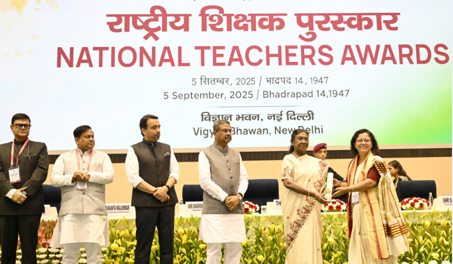 राष्ट्रपति द्रौपदी मुर्मु ने कहा कि मैं समझती हूं कि भोजन, वस्त्र और आवास की तरह शिक्षा भी, व्यक्ति की गरिमा और सुरक्षा के लिए अनिवार्य है। संवेदनशील शिक्षक बच्चों में गरिमा और सुरक्षा की भावना जगाने का काम करते हैं। साथ ही राष्ट्रपति द्रौपदी मुर्मु ने कहा बालिकाओं की शिक्षा को सर्वाधिक महत्व दिया जाना चाहिए। बेटियों की शिक्षा में निवेश करके, हम अपने परिवार, समाज और राष्ट्र के निर्माण में अमूल्य निवेश करते हैं।राष्ट्रपति द्रौपदी मुर्मु ने कहा राष्ट्रीय शिक्षा नीति का उद्देश्य है कि भारत एक ग्लोब नॉलेज सुपरपॉवर बने। इसके लिए यह अनिवार्य है कि हमारे शिक्षकों की पहचान विश्व के सर्वश्रेष्ठ शिक्षकों के रूप में हो।