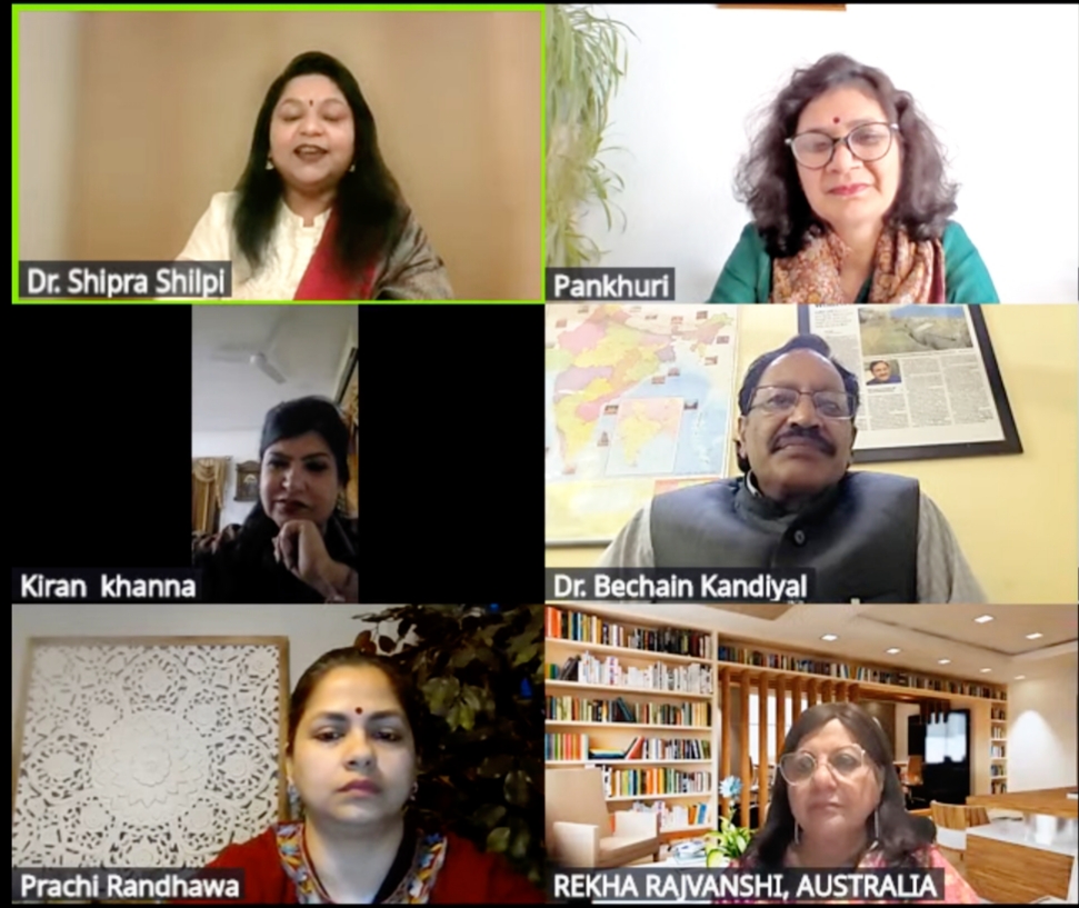 कार्यक्रम का शुभारंभ डॉ. बेचैन कंडियाल के प्रभावशाली स्वागत उद्बोधन से हुआ। संचालन डॉ. शिप्रा सक्सेना एवं आशना कंडियाल नेगी द्वारा अत्यंत सजीव एवं प्रभावपूर्ण ढंग से किया गया। कार्यक्रम की संकल्पना में पूजा पोखरियाल का विशेष योगदान रहा। अंत में श्रीमती मोनिका शर्मा ने सभी प्रतिभागियों एवं उपस्थित जनों के प्रति आभार व्यक्त किया। यह संगोष्ठी न केवल एक साहित्यिक आयोजन रही, बल्कि वर्तमान युद्ध की परिस्थितियों के बीच विश्व शांति के लिए सामूहिक चिंतन, संवेदनशील अभिव्यक्ति और सकारात्मक पहल का एक सशक्त उदाहरण भी बनी। “वेद एवं विश्व शांति अभियान” के अन्तर्गत लेखक गाँव द्वारा किया गया यह प्रयास वैश्विक स्तर पर शांति, संवाद और मानवीय एकता को सुदृढ़ करने की दिशा में एक महत्वपूर्ण कदम सिद्ध हुआ।
