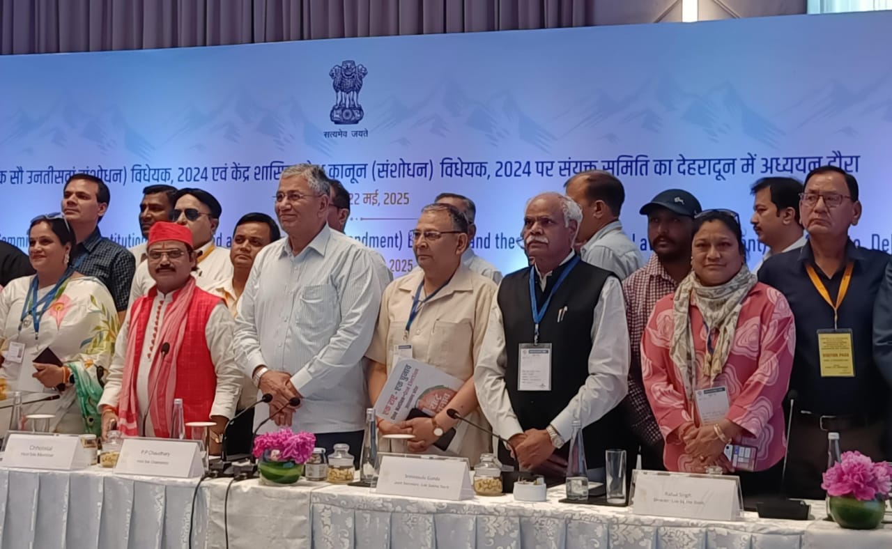 देहरादून: कार्यालय जिलाधिकारी, देहरादून के तत्वाधान में देश में एक साथ चुनाव सम्पन्न कराये जाने के संबंध में संविधान (129वां संशोधन) विधेयक, 2024 एवं राज्य विधि (संशोधन) विधेयक, 2024 पर विचार-विमर्श हेतु गठित संयुक्त समिति द्वारा 22 मई, 2025 को ताज जसूरी फुटहिल देहरादून में एक कार्यक्रम का आयोजन किया गया। संयुक्त संसदीय समिति के अध्यक्ष पी. पी. चैधरी की गरिमामयी उपस्थिति में भारत सरकार द्वारा प्राप्त निर्देशों के अनुपालन में उत्तराखण्ड के स्थानीय प्रख्यात हस्तियों के साथ विचार-विमर्श किया गया। संयुक्त संसदीय समिति के सदस्य सांसद छोटेलाल ने कहा कि एक राष्ट्र, एक चुनाव, एक दिन किसी विशेष दल के लिए नहीं बल्कि यह एक राष्ट्र हित के लिए बदलाव है। इस कार्यक्रम के दौरान सभी स्थानीय हस्तियों ने संयुक्त संसदीय समिति के सदस्यों के साथ अपने-अपने विचार एवं सुझाव सांझा किए।