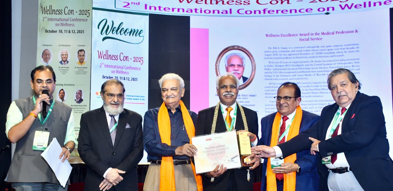 देहरादून। देश के प्रख्यात अस्थि रोग विशेषज्ञ और पद्मश्री से सम्मानित डॉ. बी. के. एस. संजय को वेलनेस कॉन 2025 के दौरान ‘वेलनेस एक्सीलेंस अवार्ड’ से सम्मानित किया गया। यह सम्मान उन्हें जनस्वास्थ्य जागरूकता और स्वस्थ जीवनशैली को बढ़ावा देने में उनके अद्वितीय योगदान के लिए दिया गया। प्रयत्न और हिंद इंस्टीट्यूट ऑफ मेडिकल साइंसेज़, सफेदाबाद, बाराबंकी (उत्तर प्रदेश) के संयुक्त तत्वावधान में आयोजित द्वितीय अंतरराष्ट्रीय वेलनेस सम्मेलन में डॉ. संजय ने “स्वास्थ्य केवल एक संपत्ति नहीं, बल्कि एक संसाधन भी है जिसे सभी को पोषित करना चाहिए“ विषय पर मुख्य वक्तव्य दिया। उन्होंने स्वास्थ्य, शिक्षा और स्वास्थ्य को राष्ट्र निर्माण की नींव बताते हुए, ड्यूस मॉडल डी-डाइट (आहार), ई- एक्सरसाइज (व्यायाम), डब्लू-वर्क (कार्य) और एस-स्लीप (नींद) कृ प्रस्तुत किया, जिसे उन्होंने “स्वास्थ्य संवर्धन सूत्र“ बताया।