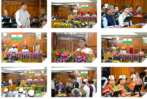 मुख्यमंत्री पुष्कर सिंह धामी ने अपने स्वागत भाषण में कहा कि उत्तराखंड राज्य स्थापना के रजतोत्सव पर आयोजित इस विशेष सत्र में माननीय राष्ट्रपति का मार्गदर्शन हम सबको प्राप्त हो रहा है। इसके लिए उन्होंने राष्ट्रपति का आभार व्यक्त किया। उन्होंने कहा कि राष्ट्रपति का सम्पूर्ण जीवन संघर्ष, समर्पण और राष्ट्र सेवा का अनुपम उदाहरण है। उनके व्यक्तित्व में मातृत्व की ममता, सेवा का संकल्प और राष्ट्र के प्रति अटूट समर्पण का अद्भुत संगम निहित है। उन्होंने सदैव अंतिम पायदान पर खड़े व्यक्ति के कल्याण को प्राथमिकता देते हुए समाज के वंचित, शोषित एवं पिछड़े वर्गों के सशक्तिकरण हेतु कार्य किया है। मुख्यमंत्री ने कहा कि राष्ट्रपति द्रौपदी मुर्मु ने निजी जीवन में अत्यंत विषम परिस्थितियों का सामना करते हुए भी हमेशा राष्ट्र सर्वोपरि की भावना से कार्य करते हुए समाज जीवन में अपना योगदान दिया। झारखंड की राज्यपाल के रूप में भगवान बिरसा मुंडा के आदर्शों का अनुसरण करते हुए उन्होंने जनजातीय समाज के उत्थान में अविस्मरणीय भूमिका निभाई। मुख्यमंत्री ने कहा कि यह दूसरा मौका है कि जब उत्तराखंड की विधानसभा में हमारे देश के राष्ट्रपति का अभिभाषण हो रहा है, इससे पूर्व 18 मई 2015 को पूर्व राष्ट्रपति श्रद्धेय स्वर्गीय प्रणव मुखर्जी जी ने विधानसभा को संबोधित किया था।