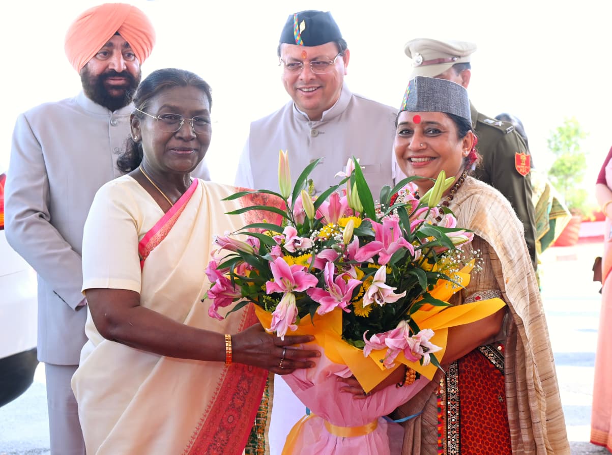 महामहिम राष्ट्रपति द्रौपदी मुर्मू के विधानसभा आगमन पर राज्यपाल ले.ज. गुरमीत सिंह (से.नि.), विधानसभा अध्यक्ष ऋतु खण्डूड़ी भूषण, मुख्यमंत्री पुष्कर सिंह धामी, कैबिनेट मंत्री सुबोध उनियाल तथा नेता प्रतिपक्ष यशपाल आर्य ने पुष्पगुच्छ भेंट कर उनका अभिनंदन किया।