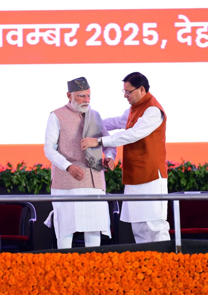 मुख्यमंत्री श्री धामी ने कहा कि केदारनाथ त्रासदी, सिलक्यारा टनल हादसा, जोशीमठ भूधंसाव या अन्य प्राकृतिक आपदाओं के समय प्रधानमंत्री जी ने संवेदनशीलता के साथ उत्तराखंड की जनता का साथ दिया है। प्रधानमंत्री जी के इसी स्नेहपूर्ण सहयोग और मार्गदर्शन से उत्तराखंड कठिनाइयों से उबरकर एक नई शक्ति, नए संकल्प और नई ऊर्जा के साथ आज आगे आगे बढ़ रहा है। उन्होंने कहा कि प्रदेश सरकार विकास के साथ-साथ राज्य की सांस्कृतिक अस्मिता, पारंपरिक पहचान और डेमोग्राफिक संतुलन को संरक्षित रखने के लिए भी कार्य कर रही है। इसी क्रम में समान नागरिक संहिता, नकल विरोधी कानून, धर्मांतरण विरोधी कानून, दंगारोधी कानून, मदरसा बोर्ड की समाप्ति जैसे कार्यों से उत्तराखंड एक समरस समाज के निर्माण की दिशा में अग्रसर है। मुख्यमंत्री ने अपने संबोधन की शुरुआत देश की रक्षा के लिए अपना सर्वोच्च बलिदान देने वाले हमारे वीर जवानों के साथ ही उत्तराखंड राज्य आंदोलन के शहीदों और आंदोलनकारियों को नमन करते हुए, प्रदेशवासियों को राज्य स्थापना दिवस की बधाई देने के साथ दी। इस मौके पर राज्यपाल ले. ज. (से.नि.) गुरमीत सिंह, केंद्रीय राज्य मंत्री अजय टम्टा, विधानसभा अध्यक्ष ऋतु खंडूड़ी, राज्यसभा सांसद भाजपा प्रदेश अध्यक्ष महेंद्र भट्ट सहित गणमान्य लोग उपस्थित हुए।