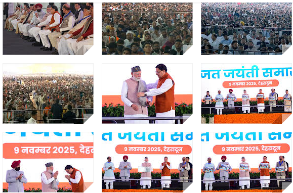 देहरादून। उत्तराखंड राज्य स्थापना दिवस, रजत जयंती पर्व के मुख्य समारोह में लिए रविवार को देहरादून पहुंचे प्रधानमंत्री नरेंद्र मोदी ने 8260 करोड़ रुपए की विकास परियोजनाओं का शिलान्यास-लोकार्पण किया। उन्होने उत्तराखंड की गत 25 वर्षों की उपलब्धियों की सराहना करते हुए, अगले 25 वर्षो के लिए रोडमैप के साथ आगे बढ़ने के लिए प्रेरित किया। एफआरआई परिसर में आयोजित समारोह में प्रधानमंत्री नरेंद्र मोदी ने गढ़वाली-कुमांऊनी में प्रदेशवासियों को राज्य स्थापना दिवस की बधाई देते हुए कहा कि, नौ नवंबर का दिन उत्तराखंड वासियों की लंबी तपस्या का फल है। ये दिन प्रत्येक उत्तराखंडवासी को गर्व का अहसास कराता है। प्रधानमंत्री ने राज्य आंदोलन के शहीदों को श्रद्धांजलि देने के साथ ही, सभी आंदोलनकारियों को भी नमन किया।