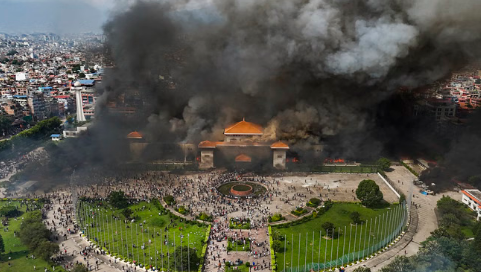 महाराजगंज स्थित राष्ट्रपति कार्यालय और प्रधानमंत्री आवास में आग लगा दी। काठमांडू के तिनकुने इलाके में स्थित कांतिपुर टेलीविजन कार्यालय में भी आंदोलनकारी समूहों ने तोड़फोड़ की और इमारत को आग लगा दी। गौशाला पुलिस चौकी, लुभु पुलिस चौकी और कालीमाटी पुलिस चौकी सहित कई पुलिस चौकियों को भी भीड़ ने आग के हवाले कर दिया। प्रदर्शनकारियों ने पूर्व प्रधानमंत्री और नेपाली कांग्रेस प्रमुख शेर बहादुर देउबा के पूर्वी काठमांडू स्थित बुधनीलकांठा स्थित घर को भी आग के हवाले कर दिया। सोशल मीडिया पर एक वीडियो सामने आया है जिसमें प्रदर्शनकारियों को देउबा और उनकी पत्नी, विदेश मंत्री आरज़ू राणा को उनके घर से बंधक बनाते हुए देखा गया। इस झड़प में दंपति को चोटें आईं और वे खून से लथपथ दिखाई दिए।