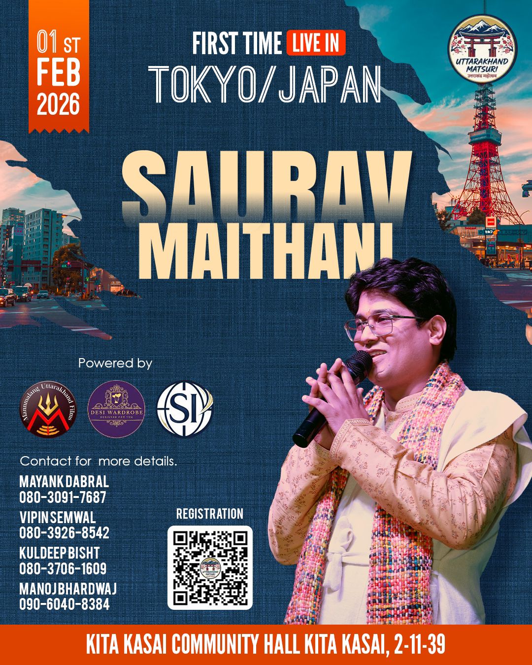 कार्यक्रम में उत्तराखंड की संस्कृति, सभ्यता, पारंपरिक पहाड़ी व्यंजन, लोकगीत एवं लोकनृत्यों की जीवंत झलक देखने को मिलेगी। ढोल-दमाऊ की थाप, लोकगीतों की मिठास और पारंपरिक वेशभूषा में सौरव मैठाणी उत्तराखंड की आत्मा को टोक्यो की धरती पर प्रस्तुत करेंगे
