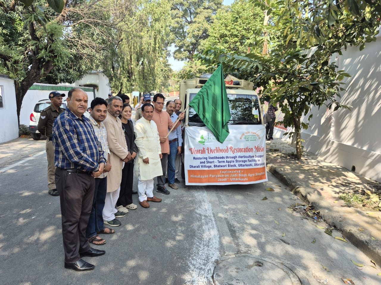 देहरादून। धराली में आई आपदा से प्रभावित हुए धराली गांव के निवासियों को तात्कालिक राहत एवं आजीविका पुनर्स्थापना के लिए हिमालय पर्यावरण जड़ी बूटी एग्रो संस्थान जाड़ी उत्तरकाशी के द्वारा धराली आजीविका पुनर्स्थापना मिशन शुरू किया गया है। जिसके अंतर्गत आजीविका सुधार के लिए विभिन्न कार्य किए जा रहे है – इसी क्रम में आज संस्थान के द्वारा धराली भेजी गई स्प्रे मशीनों को कैबिनेट मंत्री डॉ धन सिंह रावत द्वारा धराली के आपदा प्रभावित सेब काश्तकारों के लिए हिमालय पर्यावरण जड़ी बूटी एग्रो संस्थान जाड़ी द्वारा उपलब्ध करवाई जा रही 10 होंडा GX80 स्प्रे मशीन को हरी झंडी देकर देहरादून से धराली के लिए रवाना की गई। आपदा के दौरान काश्तकारों की स्प्रे मशीन के साथ अन्य कृषि उपकरण नष्ट हो गए थे।
