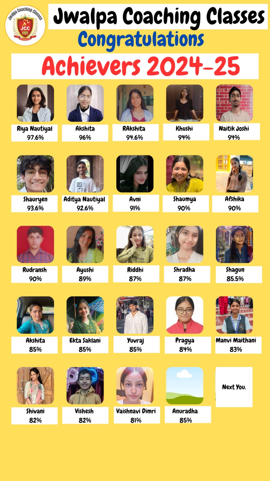 ज्वालपा कोचिंग क्लासेस ने हमेशा यही सिद्ध किया है। यहां सिर्फ मेधावी छात्रों को आगे बढ़ाया जाता है, बल्कि वे छात्र जो शुरुआत में कमजोर होते हैं, उन्हें भी लगातार मेहनत और सही सपोर्ट से बेहतरीन परिणाम दिलवाए जाते हैं।