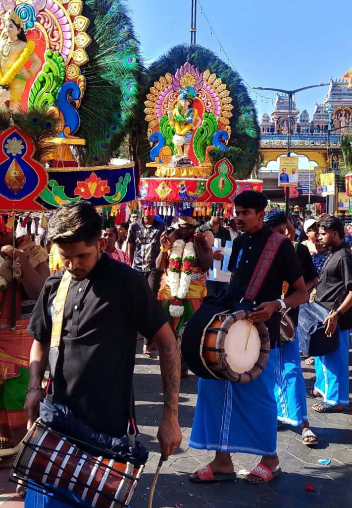 कावड़ियाँ आकार और सजावट में भिन्न–भिन्न होती हैं—कुछ साधारण लकड़ी के ढाँचे होते हैं तो कुछ फूलों, मोरपंखों और भगवान मुरुगन की छवियों से सुसज्जित भव्य संरचनाएँ। कुछ श्रद्धालु दूध से भरे पीतल या मिट्टी के घड़े भी चढ़ावे के रूप में उठाते हैं। भव्य शोभायात्रा सुबह–सवेरे कुआलालंपुर के श्री महामरियम्मन मंदिर से प्रारंभ होकर लगभग 14 किलोमीटर की यात्रा तय कर बाटू गुफाओं तक पहुँचती है। पहले यह रथ बैलों द्वारा खींचा जाता था, लेकिन 1983 से 21 फुट लंबा चाँदी का रथ वाहन द्वारा खींचा जा रहा है