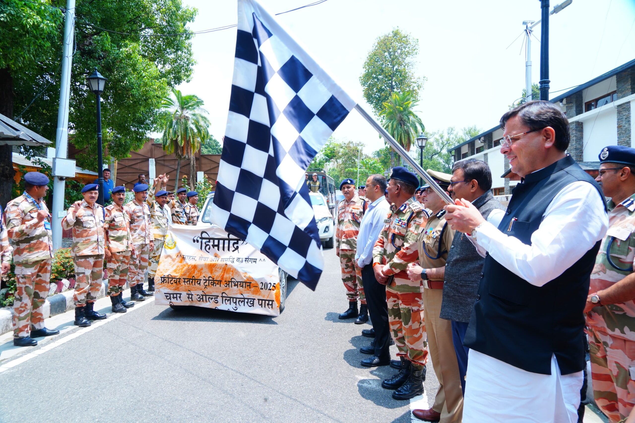 देहरादून। मुख्यमंत्री पुष्कर सिंह धामी ने शनिवार को मुख्यमंत्री कैम्प कार्यालय से भारत-तिब्बत सीमा पुलिस बल (आईटीबीपी) के हिमाद्री ट्रैकिंग अभियान-2025 को हरी झंडी दिखाकर रवाना किया। इस अवसर पर मुख्यमंत्री ने अहमदाबाद विमान दुर्घटना में दिवंगत हुए सभी यात्रियों को श्रद्धांजलि अर्पित करते हुए उनके परिजनों के प्रति संवेदना व्यक्त की। विमान दुर्घटना में दिवंगतों की आत्मा की शांति के लिए दो मिनट का मौन रखा गया। मुख्यमंत्री ने इस अवसर पर आईटीबीपी के वीर जवानों, अधिकारियों का स्वागत करते हुए कहा कि यह अभियान न केवल साहस और संकल्प का प्रतीक है, बल्कि सीमावर्ती क्षेत्रों की सामरिक सुरक्षा और सांस्कृतिक विरासत के संरक्षण की दिशा में भी एक महत्वपूर्ण कदम है। उन्होंने कहा कि आईटीबीपी का 45 सदस्यीय दल इस अभियान के अंतर्गत उत्तराखंड से हिमाचल प्रदेश होते हुए लद्दाख तक लगभग 1032 किलोमीटर की कठिन यात्रा करेगा। यह अभियान न केवल सामरिक दृष्टि से महत्वपूर्ण स्थलों की निगरानी सुनिश्चित करेगा, बल्कि धार्मिक, ऐतिहासिक और सांस्कृतिक स्थलों की पहचान तथा स्थानीय परंपराओं को प्रोत्साहित करने में भी सहायक सिद्ध होगा।