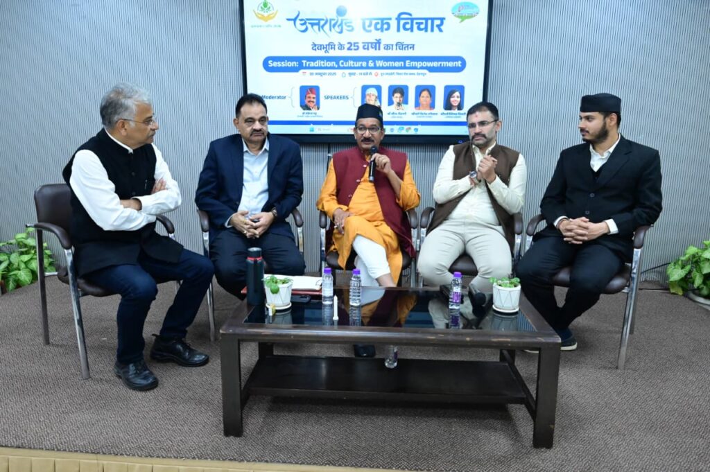 परिचर्चा में पद्मश्री व लोक गायक बसंती देवी जी, लोक गायक सौरभ मैठाणी, राज्यमंत्री विनोद उनियाल, हाईकोर्ट के अधिवक्ता स्निग्धा तिवारी, ने विचार रखे संगीत नाटक में राष्ट्रीय पुरस्कार से सम्मानित व रंगकर्मी डॉ राकेश भट्ट ने परिचर्चा में सत्र संचालन किया। सत्र में उत्तराखंड की लोक संस्कृति, गायन, कलाकारों के संघर्ष, महिलाओं की राजनीति में भागीदारी, जोशीमठ आपदा, महिलाओं का यौनदृउत्पीड़न व एसिड अटैक, आदि विषयों पर गंभीर विचार रखे गए। कार्यक्रम संयोजक अभिनव थापर ने अंत में इस कार्यक्रम में सहयोग देने के लिए आयोजक संस्थाओं ब्रह्मकमल शक्ति संस्था व दून डायलॉग के साथ कई अन्य संस्थाओं ने महत्वपूर्ण योगदान दिया है जिनमें आह्वान, हिमालय गंगा बजाओ, उत्तराखंड विमर्श, भ्क्ब् फाउंडेशन, ड।क् संस्था वह अन्य कई संस्थाओं का सहयोग हेतु सबको धन्यवाद प्रेषित किया। “उत्तराखंड एक विचार देवभूमि 25 वर्षों का चिंतन कार्यक्रम“ में वक्ताओं से दर्शकों के रूप में वरिष्ठ नौकरशाह, राज्य आंदोलनकारी, शिक्षाविद व अन्य क्षेत्र के लोगों ने सवाल – जवाब सत्र भी किया गया। कार्यक्रम में ब्रह्मकमल शक्ति संस्था द्वारा वक्ताओं व गणमान्य अथितियों का स्मृति-चिन्ह भेंट कर स्वागत किया गया। कार्यकम में पूर्व मुख्यमंत्री हरीश रावत, विधायक किशोर उपाध्याय, विधायक विनोद चमोली, लोक गायक पद्मश्री बसंती देवी , टब् स्वामीराम हिमालय यूनिवर्सिटी डॉ राजेंद्र डोभाल, लोक गायक सौरभ मैठाणी, अभिनव थापर, केंद्रीय उपाध्यक्ष उक्रांद शांति प्रसाद भट्ट, राज्यमंत्री विनोद उनियाल, संस्थापक ैक्ब् फाउंडेशन अनूप नौटियाल, हाईकोर्ट अधिवक्ता अभिजय नेगी, हाईकोर्ट अधिवक्ता स्निग्धा तिवारी, निदेशक उत्सव ग्रुप राकेश भट्ट, आंदोलनकारी द्वारिका बिष्ट, जयदीप सकलानी, पूर्व मुख्य सचिव नप सिंह नेपच्याल, दून लाइब्रेरी से चंद्रशेखर जोशी, निकोलस, ड।क् संस्था के अध्यक्ष कारण कपूर, दिल्ली के पूर्व विधायक पंकज पुष्कर, प्राची जुयाल, शालिनी कुड़ियाल, दिव्या कपरूवान थापर, व आदि ने भाग लिया।