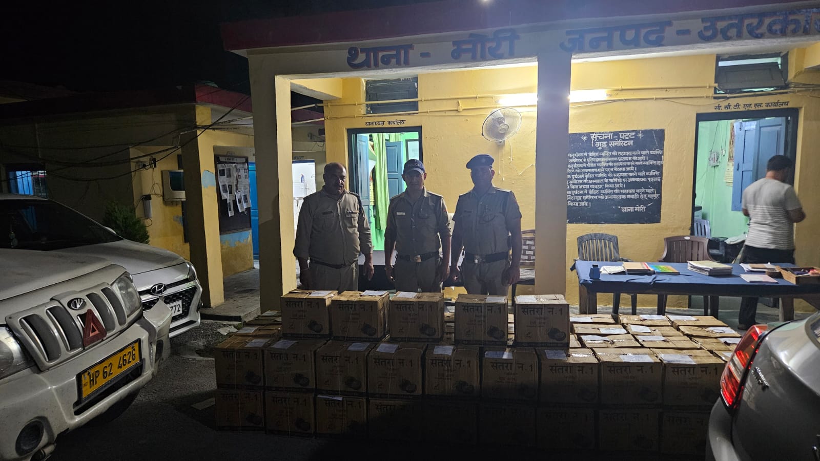 उत्तरकाशी। मोरी पुलिस ने पंचायत चुनाव के लिए उत्तराखण्ड- हिमाचल बॉर्डर से अवैध शराब 85 पेटियों की खेप के साथ बरामद किया है। गौरतलब है कि त्रिस्तरीय पंचायत चुनाव-2025 को निष्पक्ष एवं पारदर्शी तरीके से सम्पन्न करवाने के लिए उत्तरकाशी पुलिस पूरी तरह से मुस्तैद है, चुनाव के दौरान अवैध शराब व अवांछनीय गतिविधियों पर अंकुश लगाने में पुलिस अधीक्षक उत्तरकाशी सरिता डोबाल द्वारा स्टैटिक सर्विलांस टीम, उड़न दस्तों के साथ-साथ एसओजी व थाना पुलिस की टीम को एक्टिव मोड पर रखा है। थानाध्यक्ष मोरी श रणवीर सिंह चैहान के नेतृत्व में थाना मोरी पुलिस की टीम ने शनिवार रात्रि को आराकोट, सनेल बैरियर पर सघन चैकिंग अभियान के दौरान वाहन संख्या भ्च्62-4626 (पिकअप) से 85 पेटी अवैध देशी शराब संतरा मार्का नम्बर 1 बरामद की गयी है।